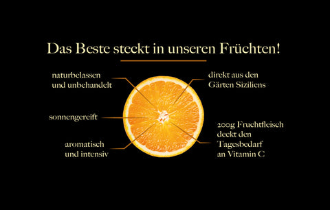 Allzu oft sind wir gezwungen, aus Mangel an Alternativen, Produkte minderer Qualität zu hohen Preisen zu kaufen. Vor allem bei Massenwaren der Discounter ist meist der Profit Hauptaugenmerk - Fairness und Nachhaltigkeit bleiben zu oft auf der Strecke. Die Folge? Ausbeutung von Bauern, lange Transportwege und größtmögliche Profitoptimierung für die Big-Player. Genau aus diesem Grund möchten wir Ihnen die Möglichkeit bieten, mit und durch uns einen anderen Weg zu gehen. Sie erhalten von uns Orangen, die ohne Zwischenlagerung und ohne chemische Behandlung, ganz frisch gepflückt, zwei bis drei Tage nach der Ernte bei uns und Ihnen sind. In Zusammenarbeit mit zwei kleinen Orangenbauern aus Sizilien, dort wo unsere Vitaminbomben reifen und gedeihen, möchten wir sicherstellen, dass Sie das bestmögliche Produkt erhalten und dabei noch etwas zurückgeben können. Ganz nach dem Motto "Geben und Nehmen" zahlen wir einen maximal fairen Preis an unsere Bauern - denn Sie sind diejenigen, die das ganze Jahr für unsere und Ihre Produkte arbeiten.